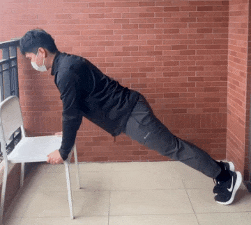 4.俯卧撑:找张桌子或者凳子,双扣按着,身体笔直慢慢往下压,再抬起来。