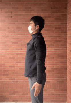 1.垂直站立,双臂自然下垂,贴到大腿外侧。慢慢地侧弯腰,先左边再右边,摆一次头必须回到正中间,接着下一次。