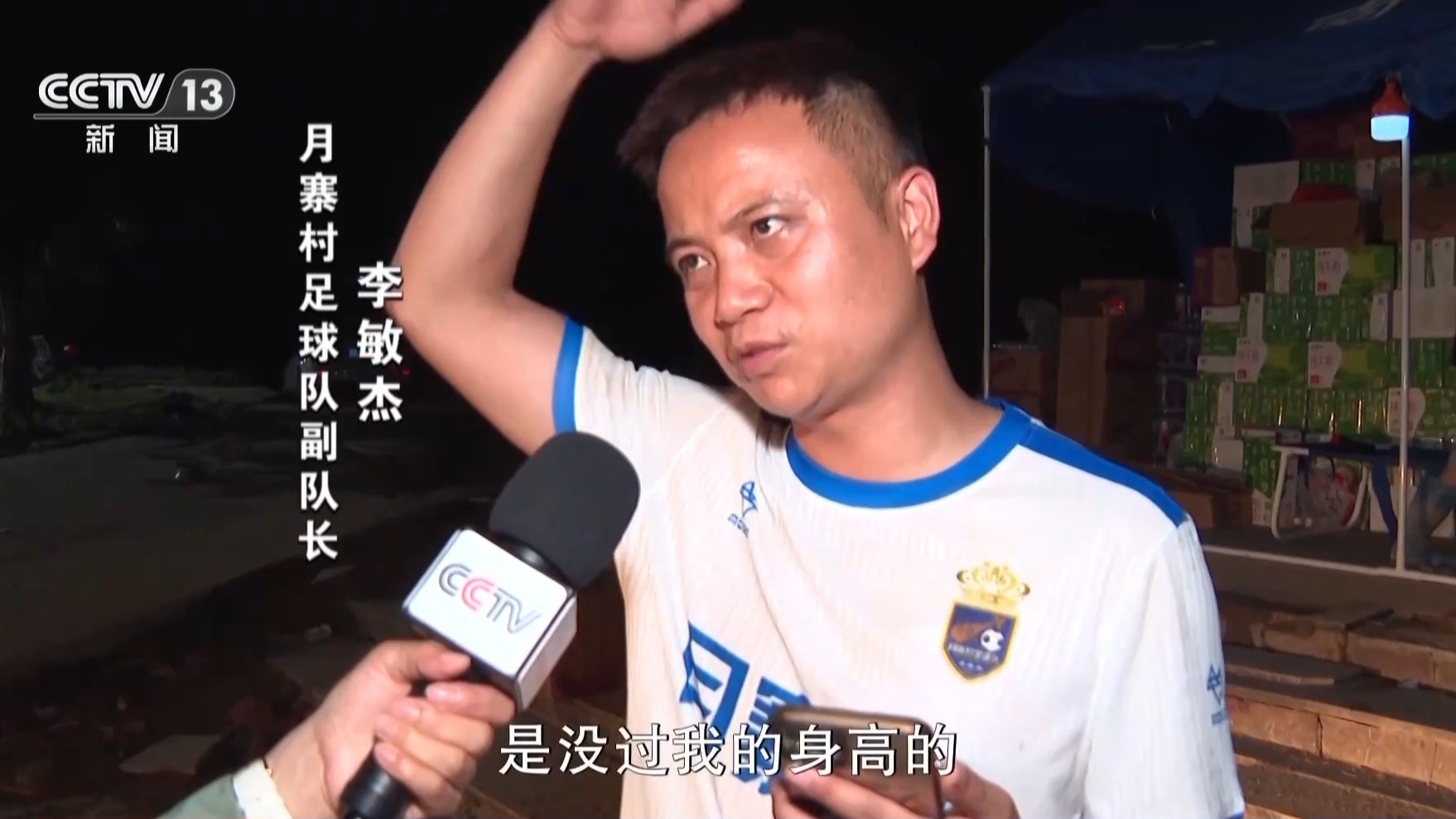 总台记者 尹平:当时洪水在这里冲击力有多大?可以看一下旁边的村超球场大屏幕,泥的痕迹还在,这就是当时洪水最高的位置,大概超过了5米。在淤泥掩盖之下,就是踢球的人造草坪,现在已经全部被洪水掀掉了,只剩下一些残迹。
