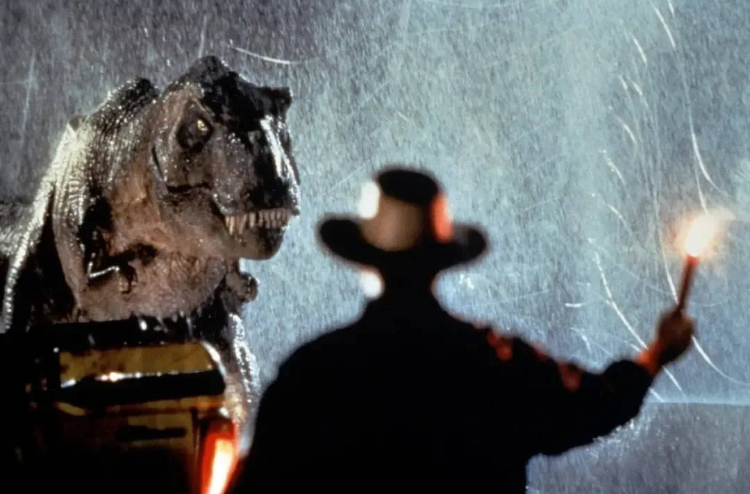 1993年那个雨夜,霸王龙冲破围栏,同时冲出了一条属于怪兽电影的技术变革。基因复活的恐龙踏过泥泞,每一步都踩在人类妄图扮演造物主的傲慢上。