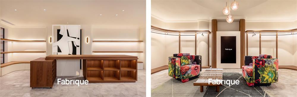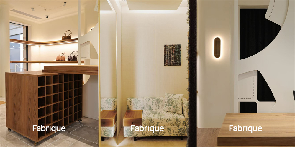 店内采用Upcycled再设计理念,利用时装边角料再造软装,使剩余面料在La Salle空间延续其灵感。对品牌来说:“La Salle De Fabrique不仅是一间店铺,更是一个向全球设计者致敬、属于每一位穿着者的风格容器。“
