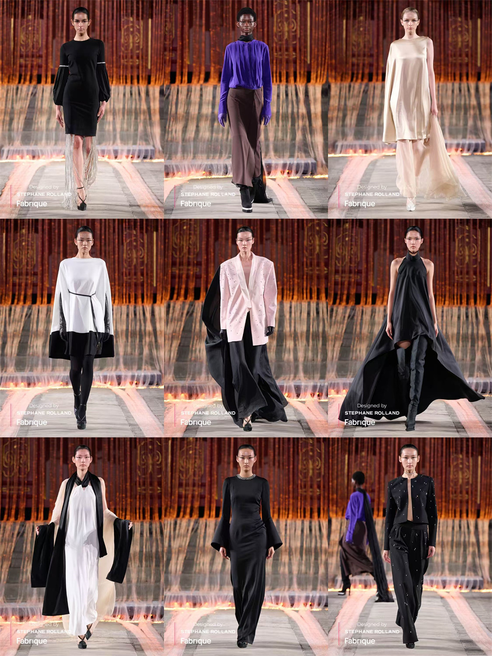 Stéphane Rolland的PURPLE LABEL系列延续了其标志性的建筑美学与高定精神,以立体剪裁、晶饰斗篷连衣裙和利落燕尾套装等设计,生动诠释了现代女性的刚柔并济与力量。作为Fabrique首位合作设计师,Stéphane Rolland为品牌创作了第一件作品,开启了二者的深厚缘分。在这个具有里程碑意义的五周年时刻,Fabrique特别呈现了与Stéphane Rolland的合作系列——从首件合作单品到曾在他的大秀上所亮相的合作成衣,再到最新发布的2025秋冬系列。这不仅是对“初心循迹”主题的深刻回应,更是对Rolland设计精神的崇高致敬,同时也标志着Fabrique紫标系列的正式亮相。