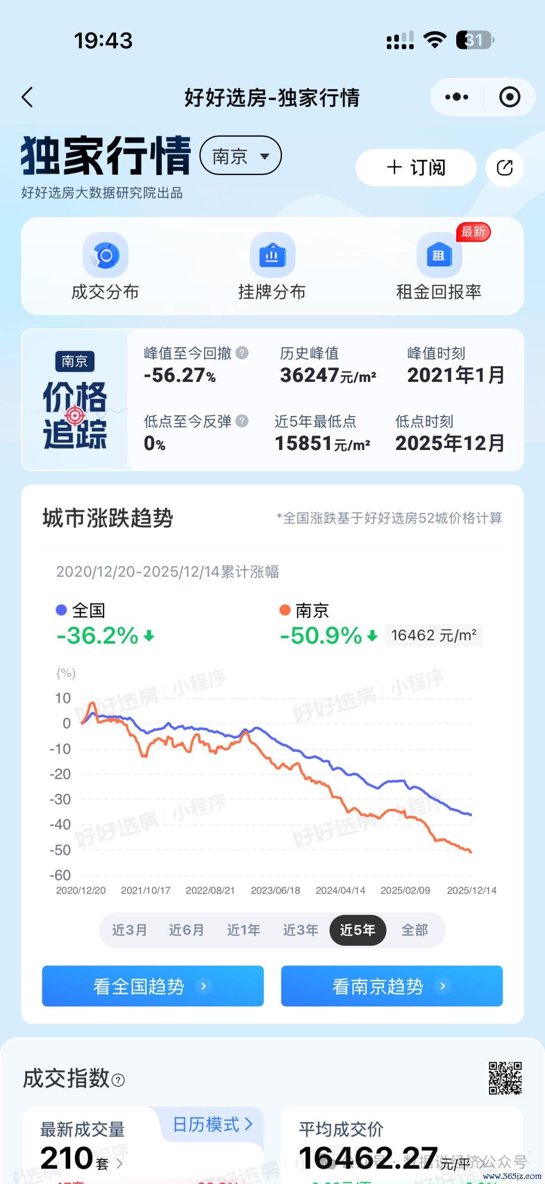 以二线城市南京市为例利赢汇,从最高点2021年1月的历史峰值,至今已经回撤56.27%。