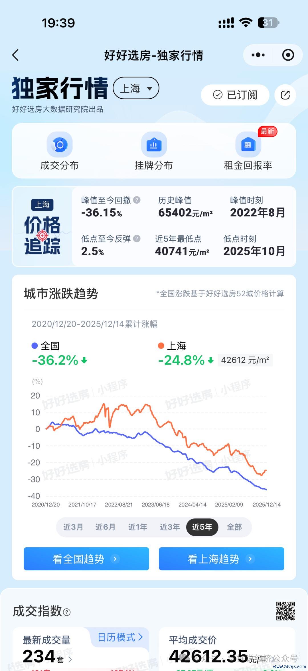 从全国来看利赢汇,近五年以来,全国房价已经经历了大幅的调整。根据好好房数据,基于52城价格计算,全国房价近五年已经下跌36.2%。